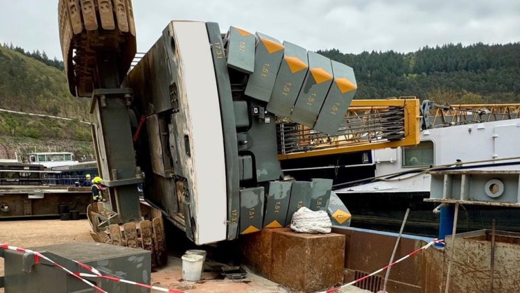 Dźwig spadł na statek żeglugi śródlądowej przy śluzie Hirschhorn (Neckar)