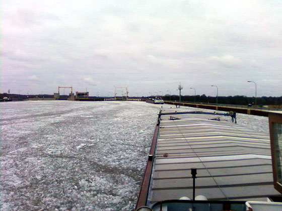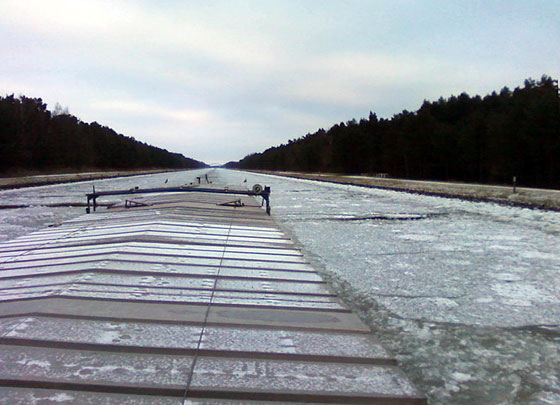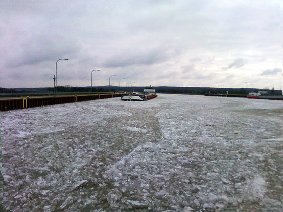 Wezera była wolna od lodu.Załadowałem w Brake do Haldensleben (Niemcy wschodnie) i powiedziałem dysponentowi, że nie wierzę żebym tam dotarł bez przeszkód. Między Minden i Hannoverem lód był już dość gruby i statek ciężko szedł rynną zrobioną przez lodołamacze.Zrobiłem nocny postój powyżej śluzy Anderten i zastanawiałem się czy rano dam radę popłynąć dalej.