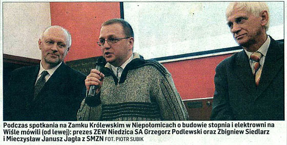 Na spotkanie zaproszono też przedstawiciela Zespołu Elektrowni Wodnych Niedzica SA, który wyraził zainteresowanie budową małej elektrowni wodnej na Wiśle.