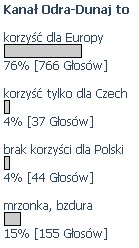 Projekt budowy kanału został uznany jak korzyść dla Europy przez 76% głosujących, mrzonką i bzdurą okresliło go 15%. Za brak korzyści dla Polski oraz korzyść wyłącznie dla Czech uznało budowę połączenia po 4% respondentów.