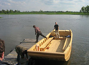 Kol. Romek zaprosił nas na nowo wybudowany galar i na przejażdżkę po Odrze. Tak więc sezon rozpoczęliśmy krótkim, bo krótkim , ale rejsem! Jak przystało na wodniaków. Potem były wodniackie dyskusje, otwieranie nowych pomostów pływających, tańce z hołubcami, których nie ośmieliłem się dokumentować.