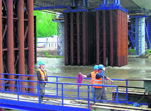 Wczoraj ewakuowano robotników, sprzęt i dokumentację z budowy mostu Rędzińskiego, który powstaje w ramach autostradowej obwodnicy Wrocławia. Część sprzętu wywieziono z Wyspy Rędzińskiej (tam mieści się ich baza), a część udało się wciągnąć na gotowe już fragmenty mostu. Robotnicy napełniali też worki z piaskiem. Nie będą budować z nich wałów. Chodziło o umocnienie żurawi: by woda nie podmyła fundamentów, bo dźwigi mogłyby się zawalić.