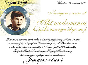 Uroczystość "wodowania" wpleciona jest w program wyżej wspomnianego I Spotkania Absolwentów Zespołu Szkół Żeglugi Śródlądowej i zapraszamy wszystkich chętnych absolwentów do wzięcia w niej udziału. Ceremonia zapowiada się interesująco i jeśli wszystko pójdzie zgodnie z naszymi planami - atrakcyjnie. Udział swój potwierdził m.in. inny "piszący absolwent TŻŚ" - autor książek "Od rzek po oceany" i "Za tych co na morzu" - Stanisław Szczepański. Relacje z wodowania jego książek są w naszym serwisie: