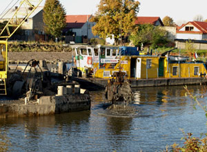 W górnym na wejściu do górnego kanału śluzy Oława km. 212,80 rzeki Odry pracuje zestaw składający się z pchacza typu Tur, Pontonu W-2 z dźwigiem typu RDK oraz górnopokładowej barki pchanej do wywożenia urobku. Jak się przewiduje prace pogłebiarskie na Odrze mogą potrwać aż do wystąpienia pierwszych zjawisk lodowych.