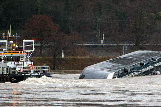 DOBRA WIADOMOŚĆ ! Dzisiaj zostaną, próbnie, przepuszczone pierwsze statki w dół Renu. Będą to wytypowane jednostki. Zabieg ten ma na celu uniknięcie "huraruszenia" i związanych z tym niebezpieczeństw. Jeśli próba się powiedzie tzn., że przepływające statki nie będą zagrożeniem dla operacji podnoszenia wraku, to czekające załogi będą mogły mieć nadzieję na rychłe odpalenie silników.