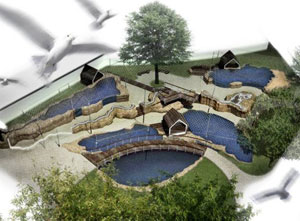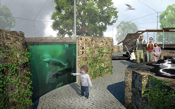 Nad basenami rozpięte zostaną też woliery, dzięki którym w odrarium zamieszka ptactwo wodne. W strefie wejściowej ekspozycji zamieszkają m.in. szablodzioby i ostrygojady, a nad basenem poświęconym środkowej części rzeki kaczki, bataliony i bączki.