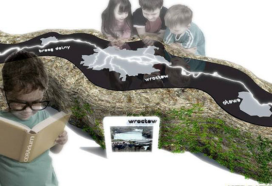 - Nasz projekt nawiązuje do wstęgi Odry płynącej przez Polskę, a każdy basen to inny fragment rzeki. Między zbiornikami chcemy stworzyć ścieżkę edukacyjną dla dzieci, na której znajdą się np. informacje o miastach, przez które przepływa rzeka - mówi Bartosz Szczepański, współautor projektu odrarium z pracowni Cereoproject.