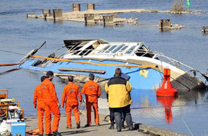 W grudniu ubiegłego roku przy wysokiej wodzie na rzece Saar (prawy dopływ Mozeli) niesiona wezbraną wodą kłoda uderzyła w zacumowany w pobliżu Kongresshalle w Saarbrücken pasażerski stateczek "MS Centurion" i zerwała go z cum. Statek spłynął z prądem na jaz stopnia wodnego Burbach (śluza i elektrownia wodna), spadł na dolną wodę i zatonął. Widoczna była jedynie część rufy.