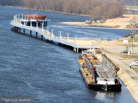 Kapitan Pielaciński ma jednak pewne obawy związane z tym transportem. - Chodzi o rzekę. O ile na odcinku od Gdańska do Płocka jest ona uregulowana i płynęło się dobrze, o tyle w górnej jej części jest płycej. Stąd najwięcej kłopotów spodziewam się na dzikich odcinkach Wisły w Świniarach, Kępie Polskiej czy Rakowie - dodaje. - Dla bezpieczeństwa przed pontonem będę miał łódź pilotową, która wskaże mi właściwą drogę. Dodatkowo z tyłu barki w Płocku doczepiliśmy mocniejsze pchacze. Mam nadzieję, że to ułatwi transport.